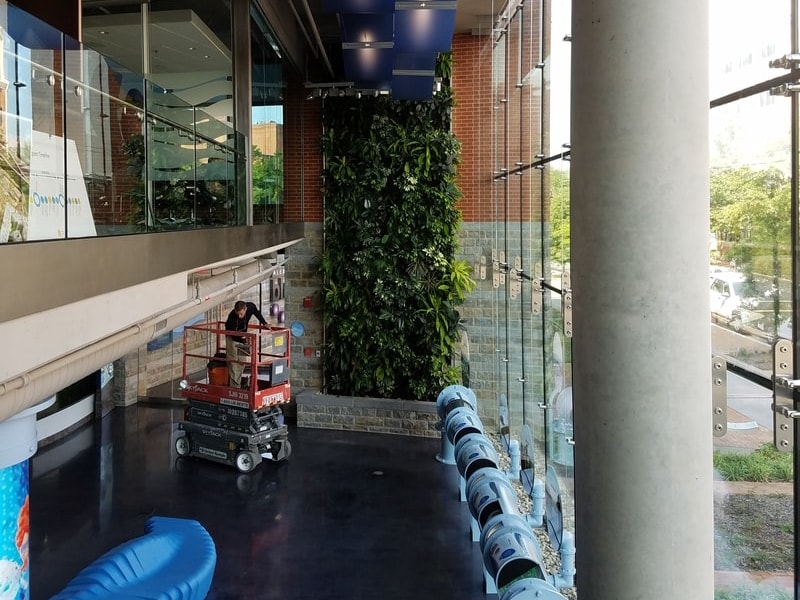 Green walls, once constructed, are not stand alone items that are self-sufficient. They do need a bit of TLC each month to maintain their condition and to look their best. All of the GWS installations come with either a 1 or 2 year maintenance contract, with the first 3 months having visits twice a month to ensure all systems are performing as expected.